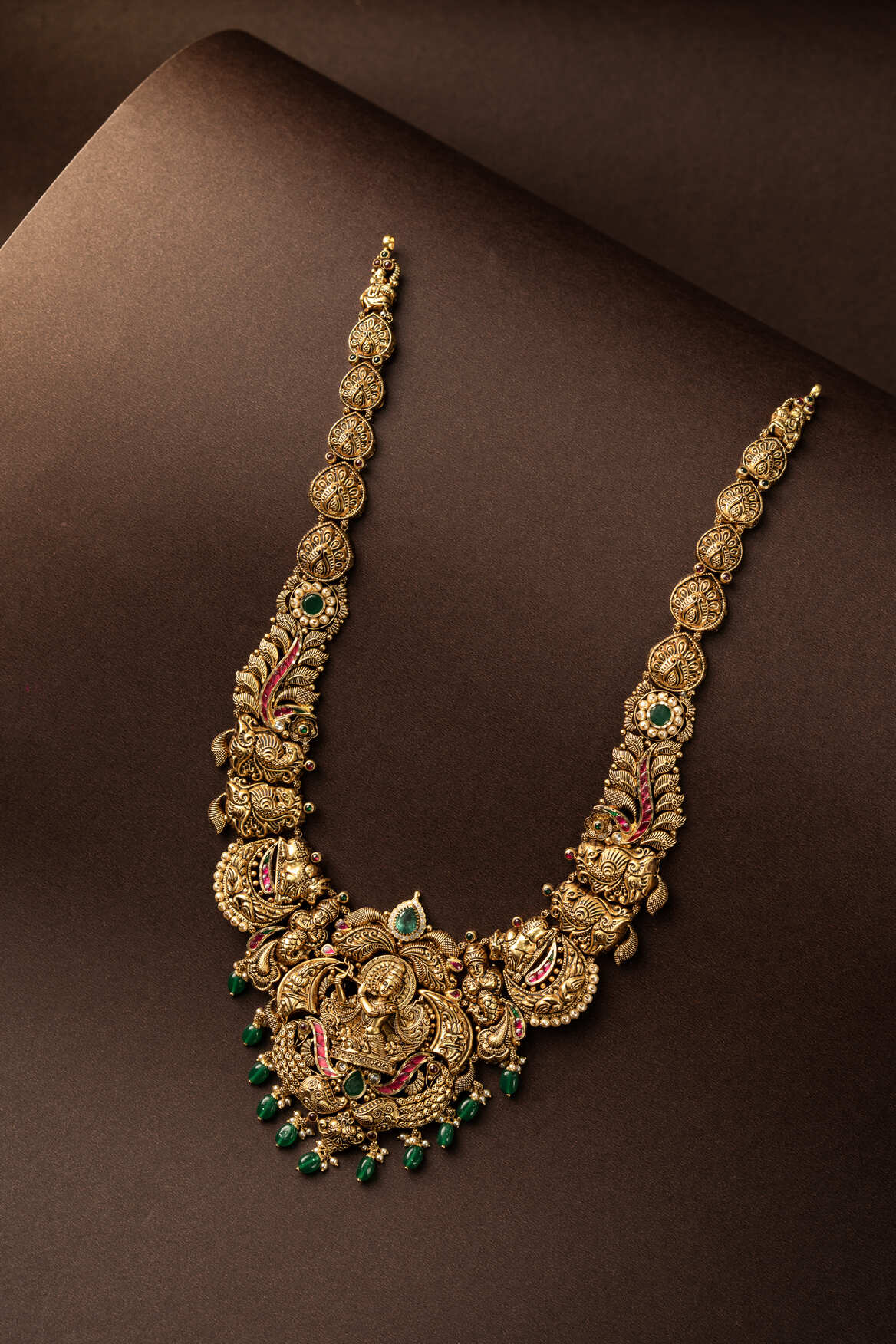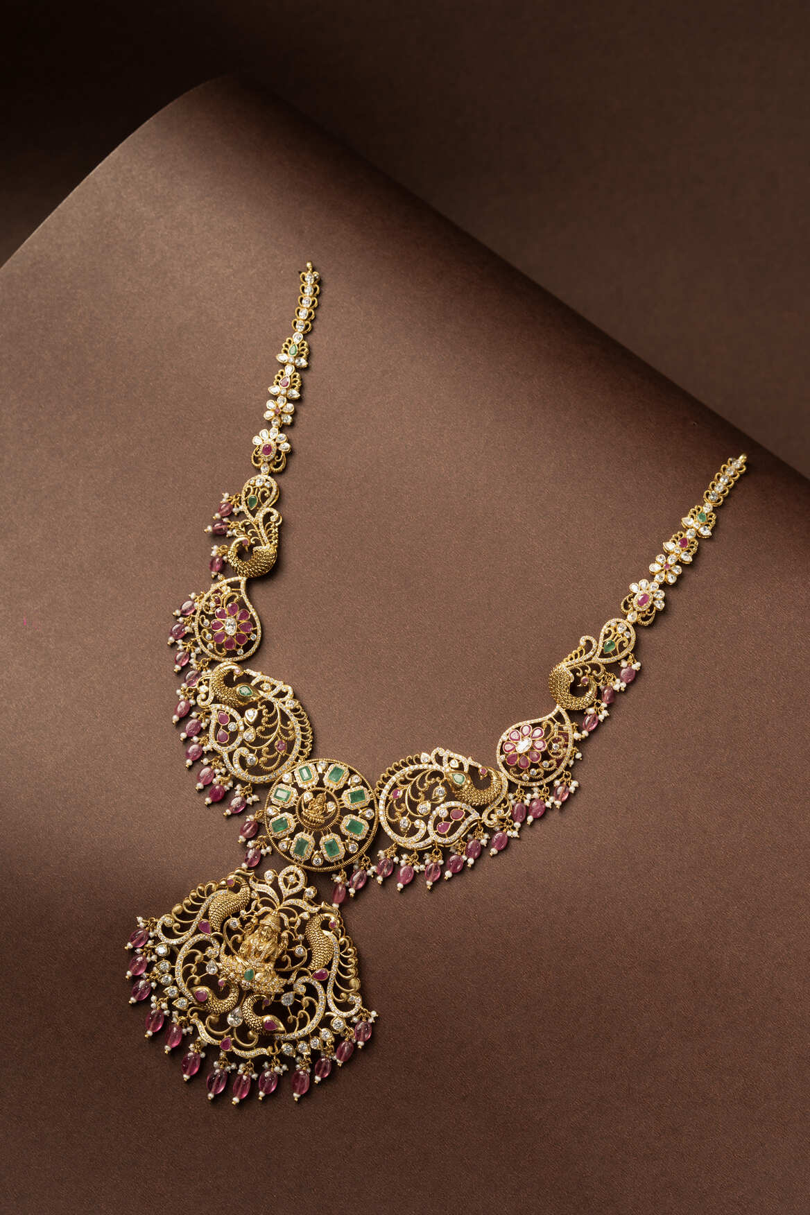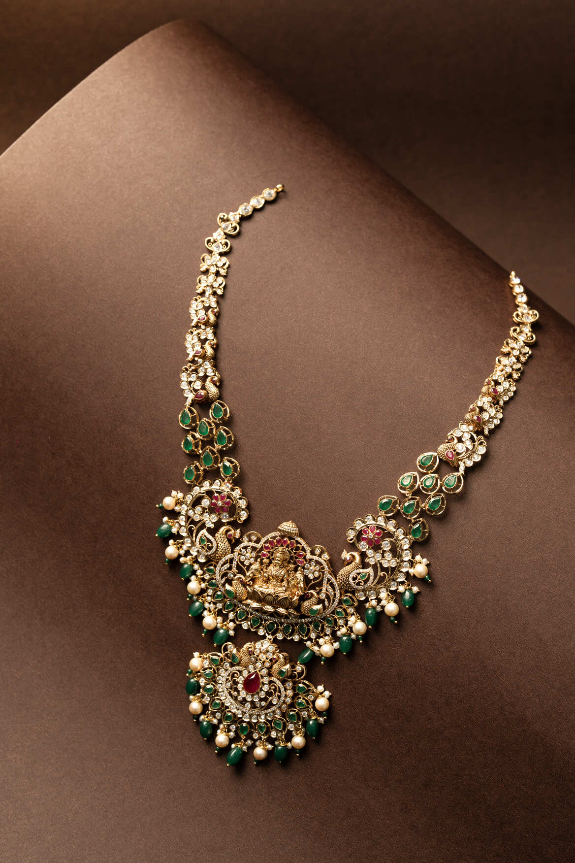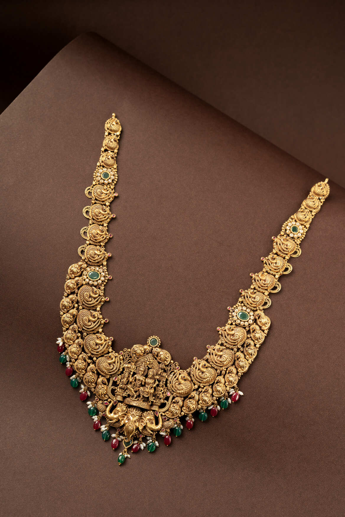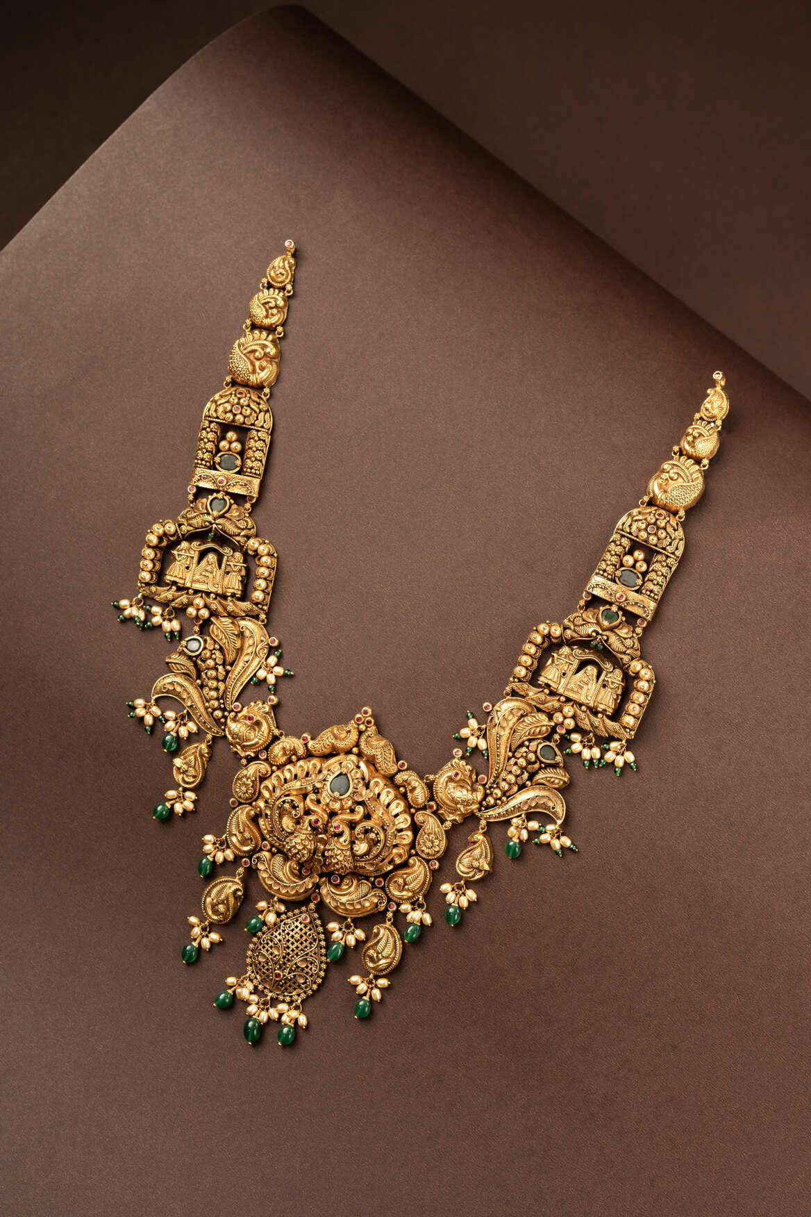 Intricately handcrafted using age-old techniques, Nakshi jewellery is known for deep detailing and rich traditional appeal. These statement designs are especially cherished for bridal wear, temple jewellery, and cultural celebrations.
